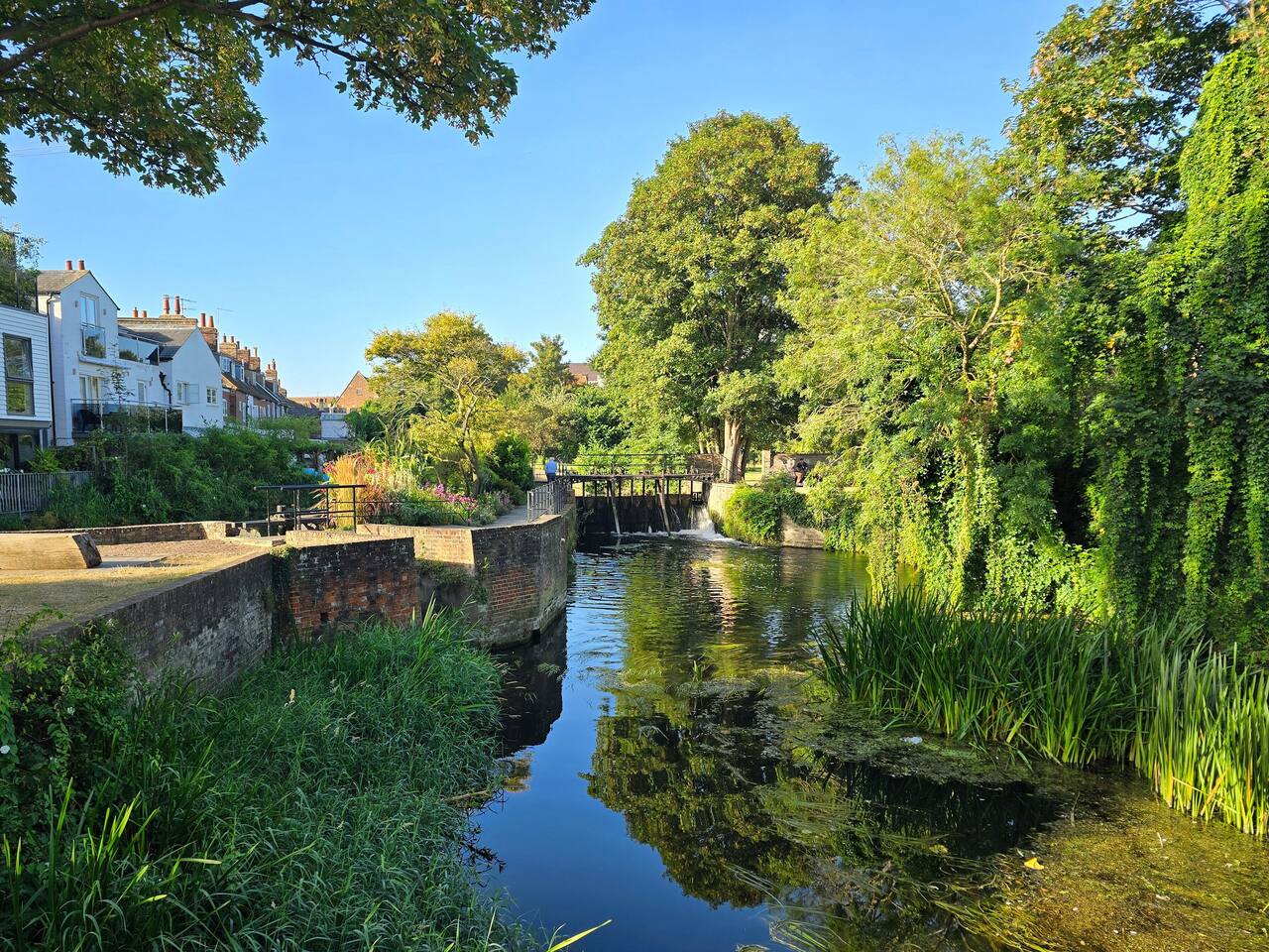 Located on the lovely and historic Mill Lane, a quiet street right in the heart of Canterbury's old city just minutes to the Cathedral and a short stroll from some of Canterbury's best bars, eateries and galleries. At the top of the lane and less than a minutes walk is the wonderful Abbots Mill gardens on the banks of the river Stour. FREE parking for one car provided for the entire length of your stay. You can see the Cathedral spires as soon as you step out of the front door. Millers Cottage was recently fully refurbished to a very high standard, blending historic 19th century Victorian features (the cottage is over 170 years old) with a modern luxury feel in the décor. As you step inside the cottage there is a very cosy living room with a lovely log electric log burner style fire, 43-inch SMART TV (displays art when on standby), SONOS music system and plenty of space to sit down and relax. BED CONFIGURATION: Bedroom 1: King Bed (Hybrid mattress) Bedroom 2: 2 Single beds. ( Orthopaedic mattresses) PLEASE NOTE these are slightly narrower than a standard single (15cm narrower) but are still comfortable for adults as well as younger guests. Travel Cot with Mattress (please note we do not provide sheets or bedding for this) KITCHEN/COOKING FACILITIES: The kitchen is equipped with all the essentials needed to cook your favourite meals whilst in Canterbury. There is an gas hob, electric oven, fridge freezer, microwave, kettle, toaster & washing/dryer machine. Nespresso coffee machine with coffee provided. The kitchen opens onto our sunny and quiet private cottage garden with lots of seating. DINING AREAS: The dining table comfortable seats 4 people (up to 6) and is ideal for a sit-down meal in the evening. The lovely wooden table is located in the open plan kitchen area. BATHROOMS/TOILET: There is 1 bathroom at the property on the first floor, with a toilet and good size shower. Complimentary shower gel, shampoo and conditioner are provided for your use. PRIVATE GARDEN: We have a lovely cottage garden with a sofa, deckchairs, garden bench and a large outdoor dining table. You can hear the Cathedral bells from the garden. WORKSPACE: A drop down desk dedicated workspace is provided, located in the master bedroom. FAMILY FEATURES: We have a travel cot with mattress for your use - please bring sheets as these are not provided.